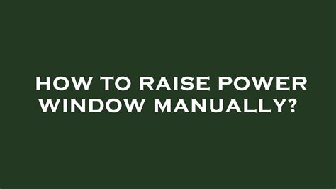 Manually moving the window to upward direction. Web how to raise power window manually? You may be wondering how to manually raise.